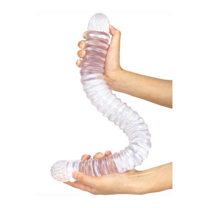 Geniet samen of alleen van deze sterk geribbelde dubbele dildo. De dildo is gemaakt van heerlijk buigzaam PVC dat perfect met je lichaam meebeweegt. De dubbele dildo heeft een totale lengte van maar liefst 55 cm en een maximale diameter van 5.5 cm. Gebruik je favoriete glijmiddel en geniet van soepele penetratie. De dildo is na gebruik eenvoudig schoon te maken met water en een milde zeep of met één van onze speciale toycleaners.