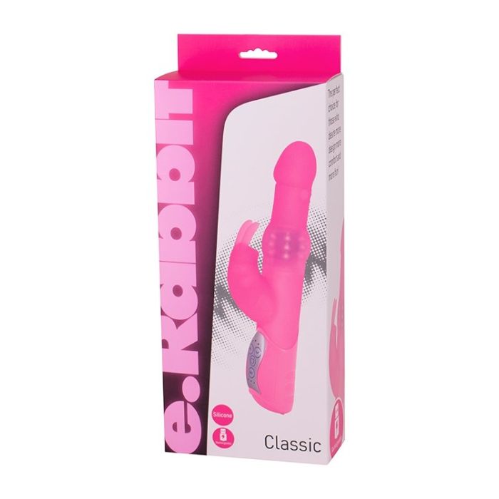 Deze roze E-Rabbit klassieke vibrator van Seven Creations heeft alles in huis wat je nodig hebt om van heerlijke orgasmes te genieten. De vibrator is gemaakt van zacht siliconen en heeft een levensechte eikel die niet kan wachten om bij je naar binnen te dringen. Breng hem in met wat glijmiddel op waterbasis en ontdek de 7 verschillende vibratiestanden terwijl de ronddraaiende beads jou het ultieme genot bezorgen. Hij heeft maar liefst 3 ronddraaiende snelheden en de konijnenoortjes zullen gelijktijdig heel doelgericht jouw clitoris verwennen. Bedien de verschillende standen en functies eenvoudig met het push button systeem. Het zal niet lang duren voordat deze E-Rabbit Klassieke vibrator jou een onvergetelijk orgasme bezorgt. Maak na gebruik eenvoudig schoon met toycleaner of water en milde zeep.