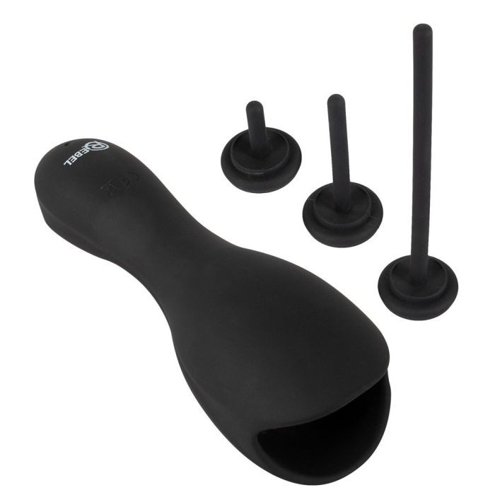 Dieser einzigartige Masturbator stimuliert sowohl die Eichel als auch die Harnröhre mit prickelnden Vibrationen. Der Masturbator wird komplett mit 3 aufsetzbaren Dilatoren, von klein bis groß, geliefert. Sowohl der Masturbator als auch die Dilatoren sind aus seidig-weichem und biegsamem Silikon gefertigt. Der Masturbator verfügt über 10 Vibrationsmodi, die einfach über das Druckknopfsystem bedient werden können. Die Hülle ist mit stimulierenden Noppen ausgestattet, die in Kombination mit den Vibrationen für eine unvergessliche Stimulation sorgen. Tipp: Verwenden Sie ausreichend Gleitmittel auf Wasserbasis und reinigen Sie sowohl die Hülle als auch die Dilatoren nach Gebrauch hygienisch mit einem speziellen Toy-Reiniger aus unserem Sortiment.