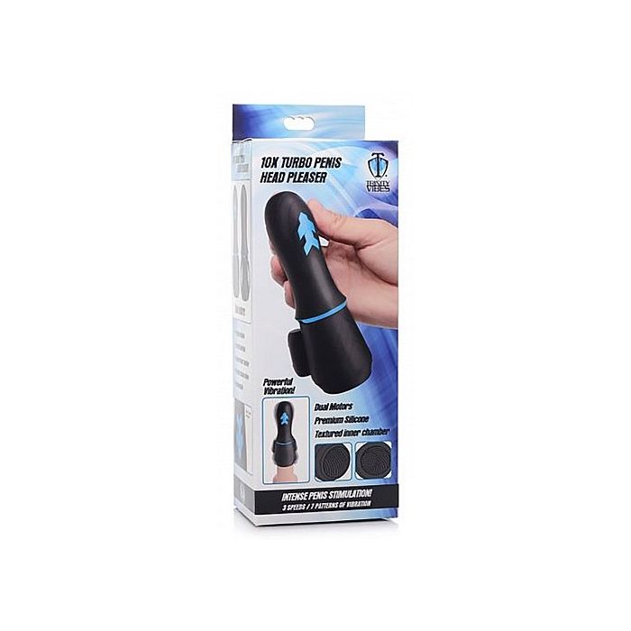 Met deze eikel vibrator 10X Turbo van Trinity Vibes is speciaal gemaakt om je penis te stimuleren. De vibrator heeft 2 motoren met 3 vibratiesnelheden en 7 vibratiestanden die je eenvoudig kunt bedienen op het speeltje zelf. Stop je penis in de vibrator en geniet van de getextureerde binnenkant, roterende ribbels en zacht noppen. Wanneer het speeltje leeg is laad je hem eenvoudig op met de meegeleverde USB oplaadkabel.