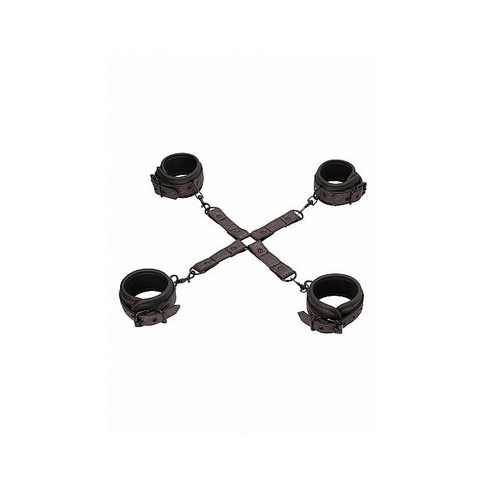 Deze elegante set is schitterend in alle opzichten. Gemaakt van een geweldige combinatie van leer en neopreen heb jij een uniek en hoogwaardig product in handen welke lang zal meegaan door zijn duurzame materialen combinatie. Zorg dat je sub geen kant meer opkan wanneer ze eenmaal vastzit in deze elegante hogtie bondage set en doe alles met haar waar jij zin aan hebt zonder dat ze tegen zal stribbelen. De boeien zijn ook los te gebruiken en sluiten snel, eenvoudig en stevig met een verstelbare riem. Aan elke boei zit een D-ring waaraan jij ook andere attributen kan vast zetten.