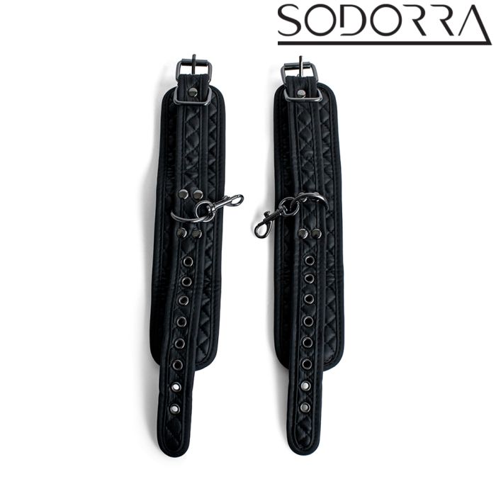 De SODORRA Vegan + Neo Diamond enkelboeien zijn de perfecte combinatie van kracht en comfort. Deze bondage-boeien zijn vervaardigd uit hoogwaardig, zacht veganistisch leer en duurzaam neopreen, waardoor ze niet alleen stijlvol zijn, maar ook een luxe gevoel geven. Het strakke, volledig zwarte ontwerp met diamantvormige vulling voegt een vleugje elegantie toe aan je slaapkamer, terwijl de stevige karabijnhaken je de vrijheid geven om je fantasieën te verkennen. Of je nu je polsen of enkels wilt vastbinden, deze boeien creëren een spannende dynamiek die elke aanraking intensifieert en je zintuigen prikkelt. Laat je verlangens de vrije loop en ervaar samen met je partner een onvergetelijke, sensuele reis. Wees onderdanig, wees dapper – de SODORRA Vegan + Neo Diamond Restraints wachten op je!