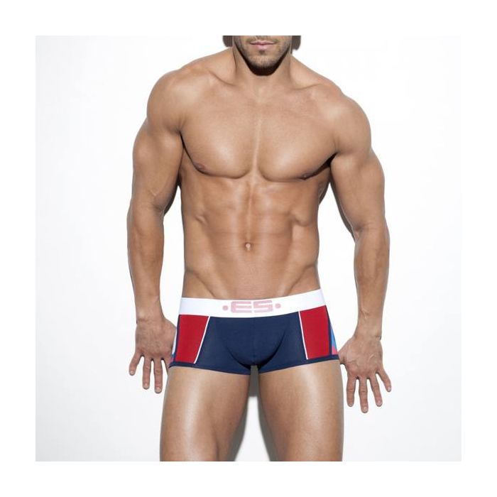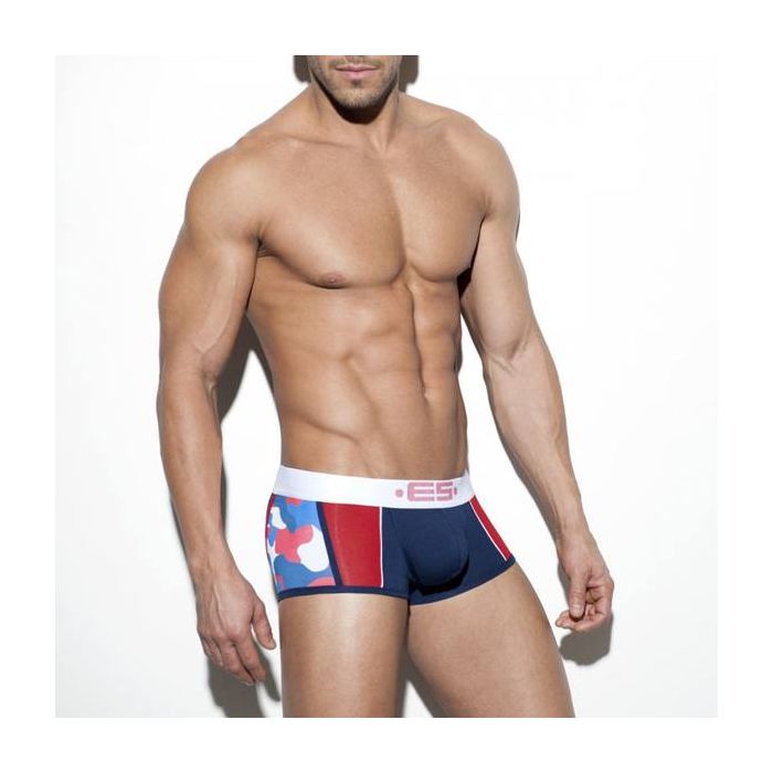 Deze strakke boxershort uit de ES Collection heeft een kleurrijk design. De Camo Mix Boxer heeft een lage tailleband gemaakt van elastiek met het ES logo voorop. De boxershort heeft een comfortabele pasvorm en een aangename pouch waar je zaakje zeker goed in zit. De blauwe boxershort heeft rode inzetten en rood, wit, blauwe camouflage print op de zijkanten.