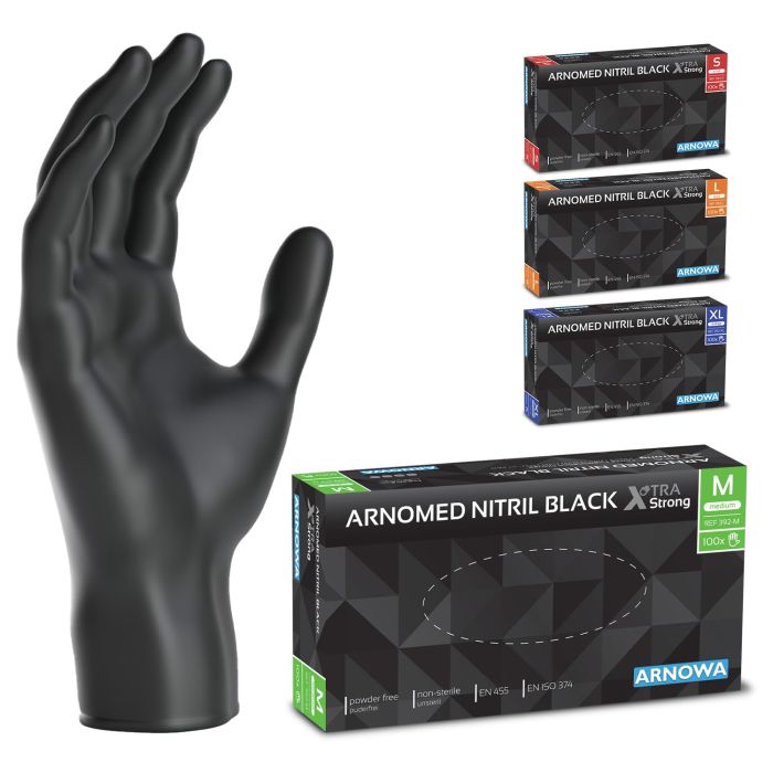 De ARNOMED Nitril Zwart Extra Sterk handschoenen is de perfecte keuze voor wie op zoek is naar bescherming en comfort. Deze extra dikke wegwerphandschoenen zijn maar liefst 50% dikker dan standaard nitril handschoenen, wat ze extreem scheurvast en robuust maakt. Met 100 stuks per doos ben je altijd goed voorbereid. De gestructureerde vingertoppen zorgen voor een stevige grip, zelfs onder zware omstandigheden, terwijl de handschoenen voldoen aan de strenge Europese normen 374 en 455. Dit betekent dat je verzekerd bent van betrouwbare bescherming tegen virussen, chemicaliën en meer. Bovendien zijn deze handschoenen volledig latex- en poedervrij, waardoor ze ideaal zijn voor mensen met een latexallergie of een gevoelige huid. Maak de slimme keuze voor jouw gezondheid en veiligheid!