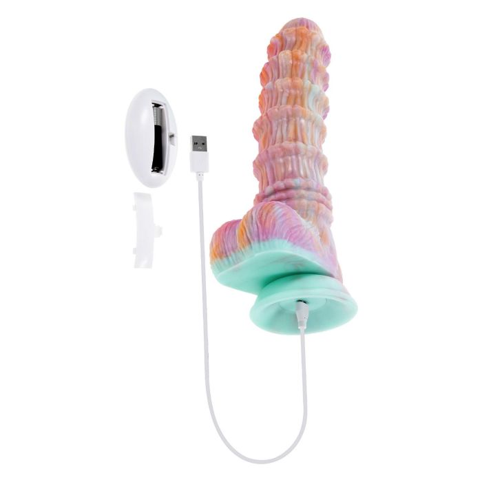 Gemaakt van ongewoon getextureerd, multicolor lichaamsveilig silicone, biedt deze fantasie-geïnspireerde vibrator een unieke ervaring. Met 8 geleidelijke ringen op de schacht, textuurballen en een krachtige zuignapbasis, is deze toy perfect voor handsfree plezier dat je naar andere dimensies zal brengen. Of je nu alleen speelt of met een partner, de veelzijdigheid van deze vibrator zorgt ervoor dat je elke keer weer verrast wordt.