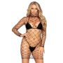 De Fence Net Mini Jurkje - Zwart van Leg Avenue is gemaakt van zacht nylon met een hoge rekbaarheid. De mazen in het netstof zijn ruim en worden kleiner richting de hals en de uiteindes van de mouwen. Dit spannende jurkje heeft een stijlvol kraagje en lange mouwen.