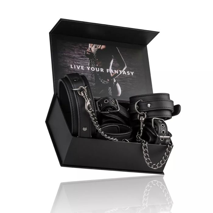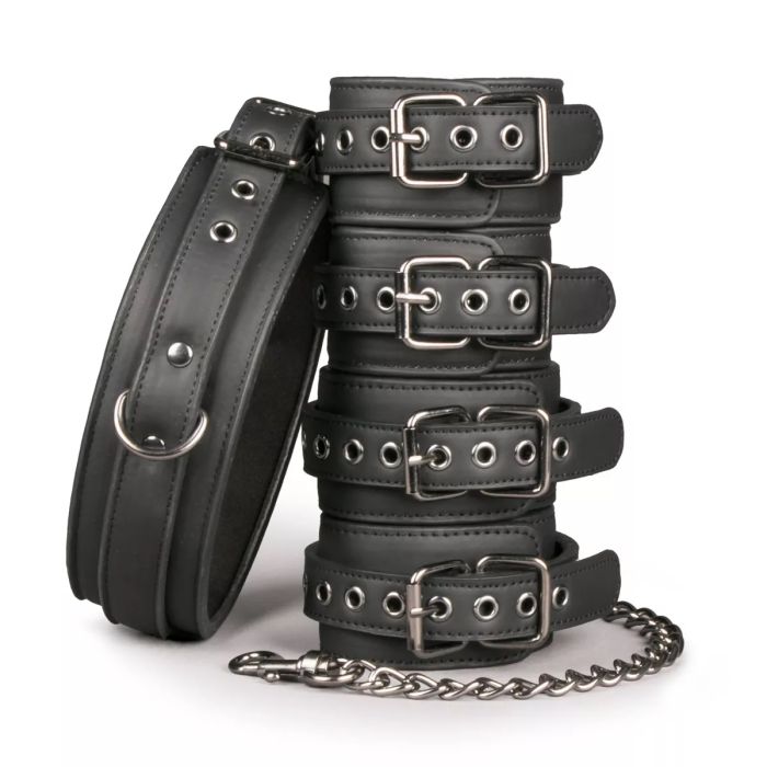 Ontdek de opwindende wereld van BDSM met deze prachtige set, die bestaat uit handboeien, enkelboeien en een halsband. Elk onderdeel is vervaardigd uit hoogwaardig kunstleer, wat niet alleen zorgt voor een luxe uitstraling, maar ook voor duurzaamheid en gebruiksgemak. De boeien zijn bovendien gevoerd, wat bijdraagt aan een optimaal draagcomfort, zelfs tijdens langere sessies. Of je nu een beginner bent of al meer ervaring hebt, deze set biedt de perfecte balans tussen stijl en functionaliteit, waardoor je je volledig kunt overgeven aan de ervaring.