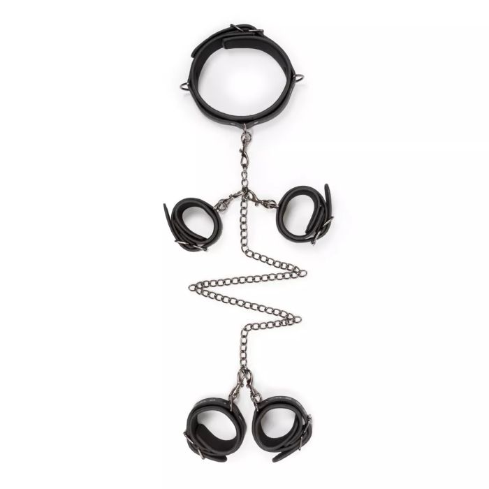 De verstelbare gespsluitingen maken het eenvoudig om de boeien aan te passen aan jouw persoonlijke voorkeuren en lichaamsafmetingen. De halsband is verstelbaar van 35 tot 53 cm, zodat hij perfect aansluit om de nek. De handboeien kunnen worden aangepast van 11 tot 28 cm, terwijl de enkelboeien een bereik hebben van 13 tot 30 cm. Dit zorgt ervoor dat je de set kunt gebruiken voor verschillende scenario's en dat hij geschikt is voor verschillende lichaamstypes. Laat je fantasieën de vrije loop en geniet van de spannende mogelijkheden die deze BDSM set te bieden heeft!