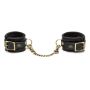 Gemaakt van kunstleer in een elegante zwarte kleur, bieden deze handboeien niet alleen een stijlvol uiterlijk, maar ook een comfortabele pasvorm dankzij het verstelbare ontwerp. De gouden details voegen een vleugje glamour toe, terwijl de stevige karabijnhaken en de ketting zorgen voor een veilige en betrouwbare ervaring.