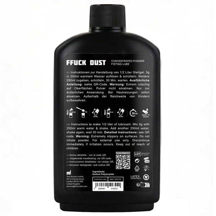 Wat FFuck Dust echt onderscheidt, is de mogelijkheid om de consistentie aan te passen aan jouw voorkeuren. Meng het poeder met water voor een dikkere of dunnere lube, perfect voor elke situatie die serieuze slip vereist. Met één fles maak je tot wel 22 liter gebruiksklare lubricant, wat het ultra-efficiënt maakt. Of je nu gaat voor intense, high-volume sessies of een zachtere glijervaring, FFuck Dust is meer dan alleen een lube; het is jouw upgrade.
