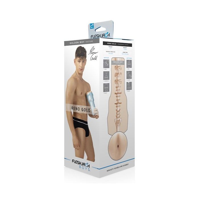 Heb jij er altijd al van gedroomd om zelf in een pornofilm te spelen met de groto pornoster Reno Gold? Met deze geweldige masturbator van het merk Fleshjack Boys wordt jouw ondeugende droom werkelijkheid. Reno Gold is er wellicht niet zelf bij, maar dankzij deze replica van zijn strakke anus heb jij wel het belangrijkste onderdeel in huis. De zachte sleeve is gemaakt van realistisch Superskin TPE en bevindt zich in een harde koker voor discreet gebruik. Met een inbrengbare lengte van 21,60 cm kun jij zeer diep gaan. De ribbels en noppen aan de binnenkant van de sleeve zorgen voor een optimale stimulatie bij elke stoot. Gebruik glijmiddel op waterbasis voor een intens en realistisch gevoel. Na gebruik kun je de sleeve uit de koker halen voor grondige reiniging.