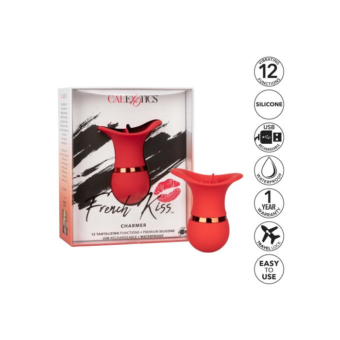 Met de French Kiss Charmer ontvang jij een ‘french kiss’ zoals je hem nog niet eerder hebt gehad. De clitoris stimulator is gemaakt van zacht siliconen en heeft alles in huis om jou de meest onvergetelijke orgasmes te bezorgen. Plaats het open ronde gedeelte op je vagina en laat het tongetje zijn werk doen. De French Kiss Charmer heeft maar liefst 12 verschillende standen; van flikkerende tongbewegingen tot krachtige vibraties. Na 75 minuten laden kun je tot wel 50 minuten genieten. Alhoewel de kans klein is dat je het zo lang volhoudt.. Het compacte formaat van de French Kiss Charmer maakt het ideaal om hem overal mee naartoe te nemen. En dankzij het reisslot hoef je je geen zorgen te maken om ongemakkelijke situaties.