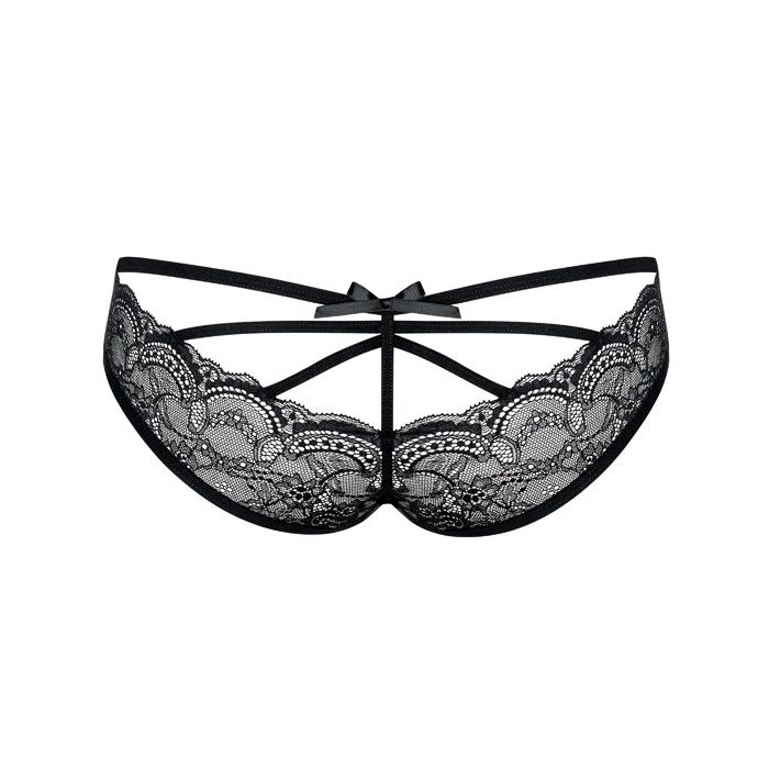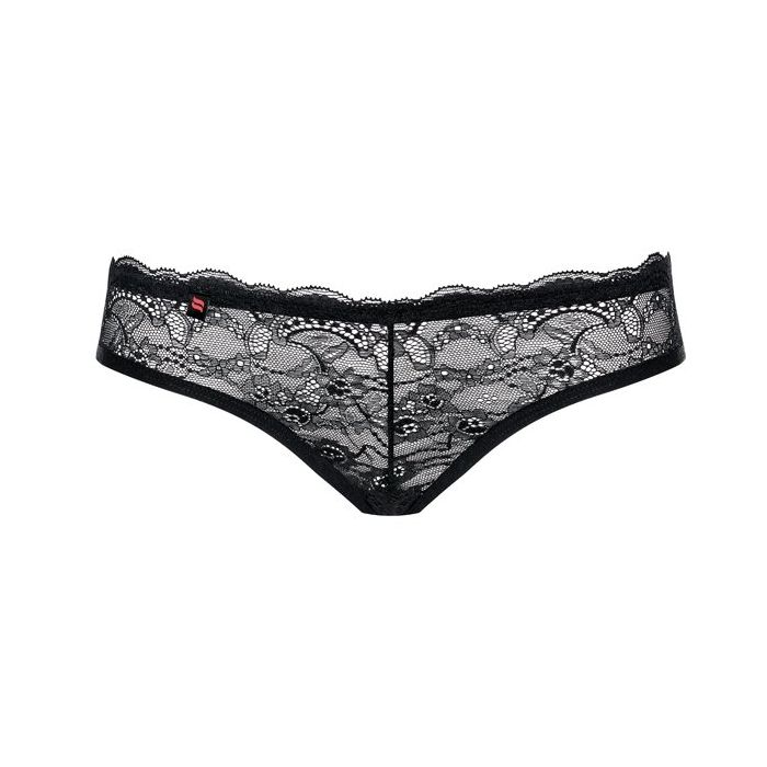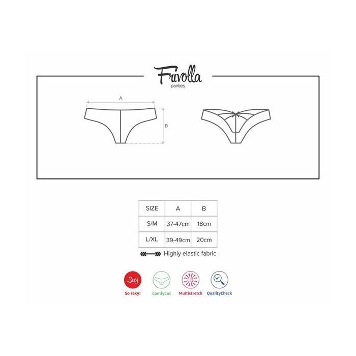 De Frivolla Kanten Slip - Zwart uit de Frivolla collectie is een pikante verrassing in een luxe cadeauverpakking. De luxe kanten slip heeft een lage taille en een strakke pasvorm. De slip is gemaakt van zacht en soepel, doorschijnend bloemen kant. Aan de achterkant is de slip laag uitgesneden en afgewerkt met speelse bandjes en een strikje in het midden voor een spannende uitstraling.