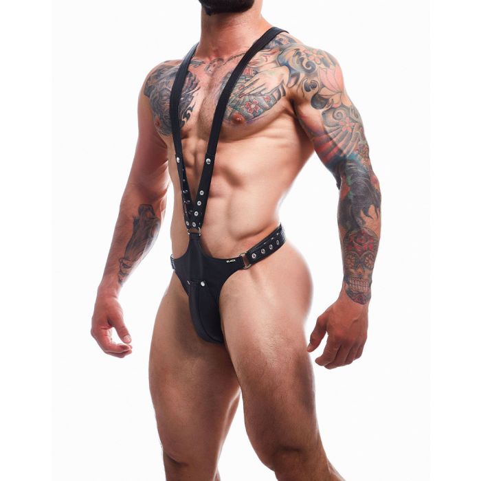 Het Dungeon harnas is een innovatief A-harnas dat een perfecte combinatie biedt van stijl en functionaliteit, ontworpen voor de moderne liefhebber van alternatieve mode. Dit robuuste kledingstuk is vervaardigd uit 100% veganistisch leer, wat niet alleen bijdraagt aan een diervriendelijke levensstijl, maar ook zorgt voor een duurzame en hoogwaardige afwerking. De strategisch geplaatste riemen lopen elegant langs de rug en accentueren de natuurlijke vormen van het lichaam, terwijl de metalen gespen aan de voorkant niet alleen een visueel statement maken, maar ook eenvoudig te openen zijn voor een speelse en intieme ervaring. Het contrast tussen de stevige textuur van het leer en de zachtheid van de huid creëert een sensuele dynamiek die het genot verhoogt. Bovendien biedt de verstelbare sluiting aan de voorkant een extra laag van erotische controle, waardoor de drager zich zowel zelfverzekerd als verleidelijk kan voelen. Dit harnas is ontworpen om in één maat te passen, waardoor het geschikt is voor de meeste lichaamstypes en een veelzijdige aanvulling vormt op elke garderobe.