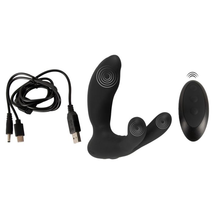 De RC G- & P-Spot Vibrator van Sweet Smile is een krachtige vibrator die zorgt voor intense dubbele stimulatie. Met zijn 3 motoren kan hij zowel de G-spot als de clitoris tegelijkertijd stimuleren, en daarnaast ook de P-spot en testikels verwennen. De vibrator heeft in totaal 7 vibratiestanden, die gemakkelijk te bedienen zijn met de praktische afstandsbediening. Je kunt ervoor kiezen om de schacht en de stimulator apart of samen te laten trillen. Met een bereik van 10 meter kan de vibrator zelfs door je partner worden bediend. Daarnaast is het ook mogelijk om de vibraties direct op het speeltje zelf te bedienen met een druk op de knop.
