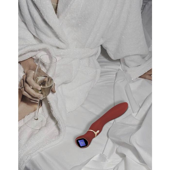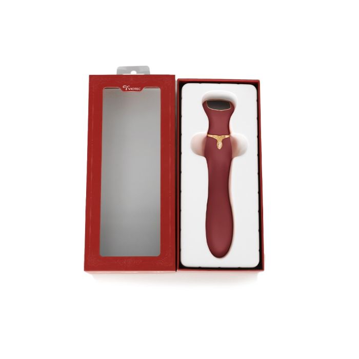 Maak kennis met de Viotec Chance, een verfijnde g-spot massager die niet alleen esthetisch aantrekkelijk is, maar ook ontworpen is om een ongeëvenaarde sensatie te bieden. De combinatie van een luxueuze gouden afwerking en wijnrode accenten maakt dit apparaat tot een waar pronkstuk in elke slaapkamer. Het ergonomische ontwerp zorgt ervoor dat de vibrator perfect in de hand ligt, terwijl de zachte, huidvriendelijke materialen een comfortabele ervaring garanderen. Dankzij het innovatieve LCD-scherm aan de bovenkant van de stimulator heb je volledige controle over je plezier; met een eenvoudige veegbeweging pas je de vibratie-intensiteit aan en navigeer je door de verschillende vibratiestanden.