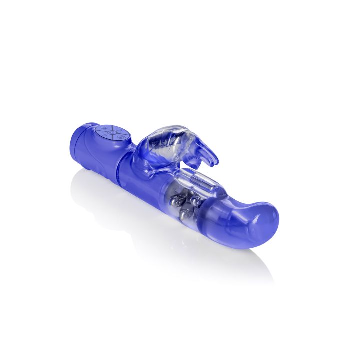 Gebruik de G-Spot Vibrator Triple G Jack rabbit - Roze van het merk Calexotics voor een ongekende G-Spot stimulatie! Bereik nog intensere hoogtepunten door deze vibrator met gebogen kop in een prachtig roze kleur. De draaiende beads van de vibrator voorzien je van extra vaginaal sensaties en G-Spot genot. De vibrator met een lengte van 26,00 cm( 12,75 cm inbrengbaar) en een diameter van 5,00 cm vervult al jouw erotische verwachtingen. Terwijl de clitoris stimulator je kleine knopje optimaal verwent met sterke trillingen. Door de meervoudige stimulatie van dit seksspeeltje kom je sneller en heftiger tot een hoogtepunt. De vibrator beschikt over een krachtige motor en 10 heerlijke standen welke eenvoudig te bedienen zijn met een handig pushbutton systeem. De G-Spot vibrator Triple Jack Rabbit is gemaakt van soepel TPE materiaal en is volkomen bodysafe. Daarnaast is je toy waterproof. Neem je nieuwe roze sextoy mee naar de badkamer voor een stomende en sensuele solo sessie. Na gebruik maak je G-Spot vibrator makkelijk schoon met water en een milde of een toycleaner.