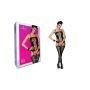 De G300 Bodystocking in het elegant zwart imiteert de verleidelijke look van een corset met bijpassende kousen en jarretels, waardoor je een onweerstaanbare uitstraling krijgt. Het originele ontwerp met een speelse combinatie van stippen en lijnen, samen met opengewerkte geometrische vormen op de buste, zorgt voor een verfijnde en sensuele look. Gemaakt van een delicate stof die de contouren van je lichaam prachtig accentueert, biedt deze bodystocking een comfortabele pasvorm dankzij de samenstelling van 90% nylon en 10% elastaan. De klassieke, niet-verstelbare schouderbanden zorgen voor een moeiteloze elegantie, waardoor je je zelfverzekerd en aantrekkelijk voelt, of je nu een speciale gelegenheid viert of gewoon jezelf wilt verwennen. Voeg deze bodystocking toe aan je lingeriecollectie en laat je verbeelding de vrije loop!