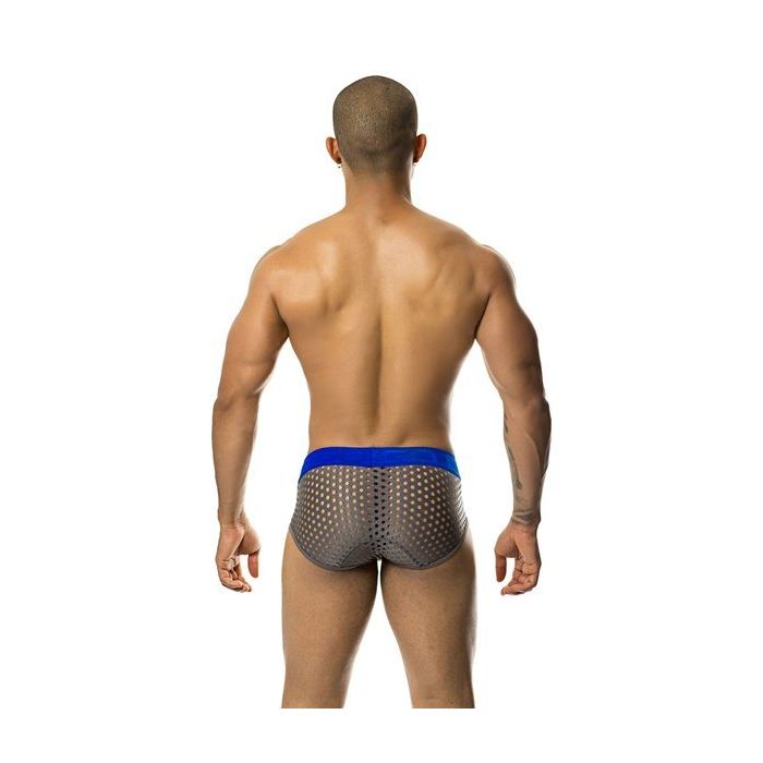 De Carnaly Slip - Grijs van GIGO is een spannende creatie. Deze slip is gemaakt van grof, grijs gekleurd mesh. Het mesh zit heerlijk knus rond jouw kruis en billen en geeft een inkijkje in wat jij in huis hebt. Aan de voorzijde heeft de slip een speels opengewerkt design met straps.