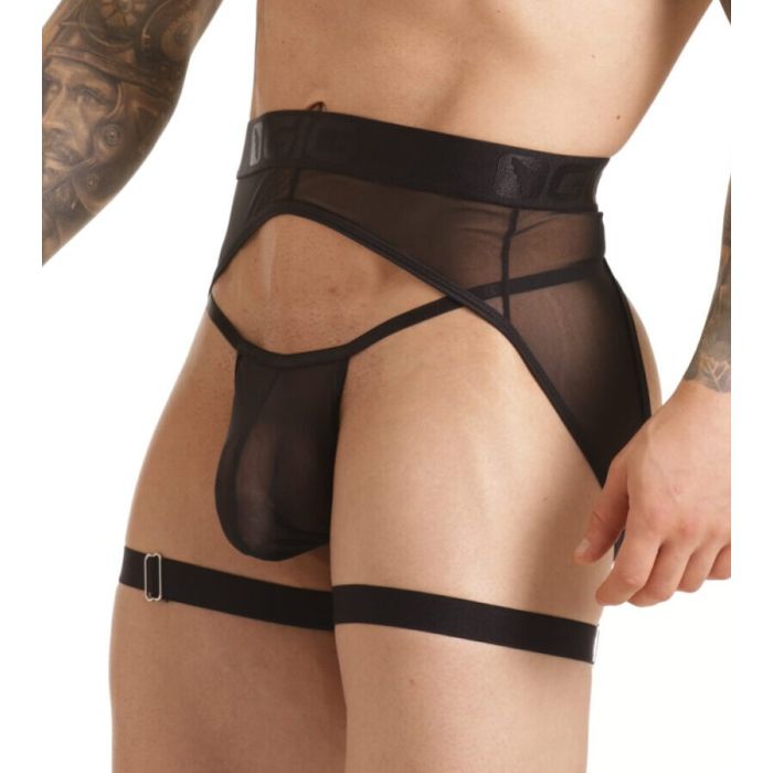 Maak je avond spannender met het dragen van de speelse jockstrap GIGO Clandestine G-String Gelbert Harnas - Zwart. Deze jockstrap is een absolute must-have voor elke man. Gemaakt van elastisch materiaal, biedt deze jockstrap een perfecte pasvorm en ultiem comfort. Het unieke ontwerp van de jockstrap accentueert je mannelijkheid en laat je vormen prachtig uitkomen. Met de aangehechte beenbanden transformeer je elke outfit in een spannende en verleidelijke look. Het merk GIGO staat bekend om zijn trendy en hoogwaardige mannenlingerie, en deze jockstrap is daar geen uitzondering op.