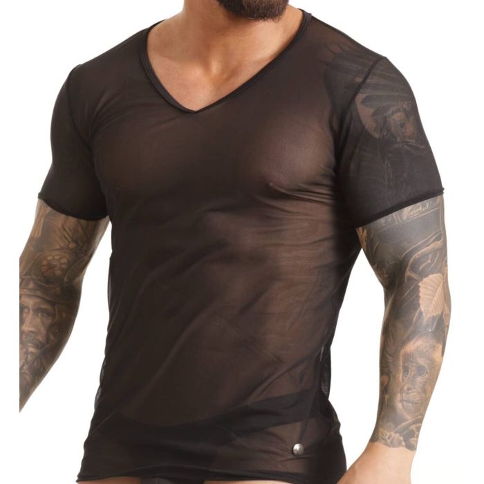 Het GIGO Clandestine T-Shirt - Zwart is perfect voor degenen die op zoek zijn naar een casual outfit met een stoere uitstraling. Met zijn vlotte V-hals en semi-transparante look, geeft dit T-shirt een uitdagende twist aan je stijl. Het shirt is gemaakt van zacht en soepel materiaal, waardoor het een aangenaam draagcomfort biedt. Of je het nu combineert met een jeans voor een relaxte look of met een leren jasje voor een edgy uitstraling, dit T-shirt zal zeker een statement maken.