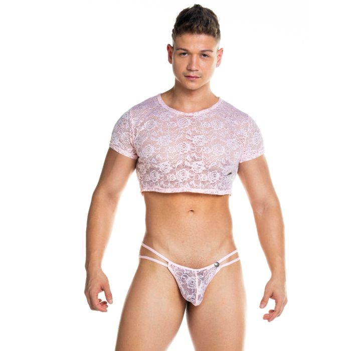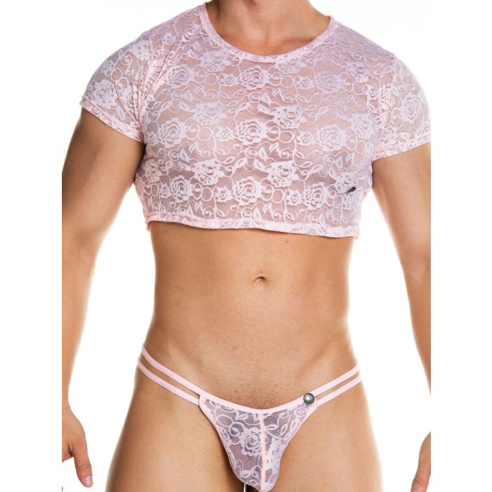 Verleid je partner met het dragen van de Gigo Crop Top Kant - Roze. Meestal wordt een crop top door vrouwen gedragen, maar het kan natuurlijk net zo goed (en misschien wel nog wel beter) door mannen gedragen worden. Met het dragen van deze crop top komen jouw prachtige buikspieren en mannelijke lijnen optimaal tot hun recht voor een verleidelijke look. Het sierlijke kant is licht doorschijnend en zeer elastisch waardoor de top een prettig draagcomfort en uitdagende look heeft.