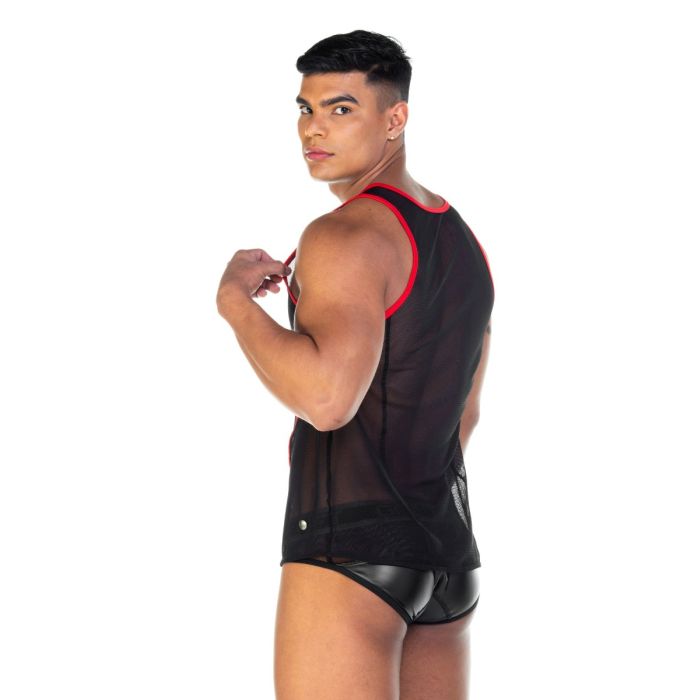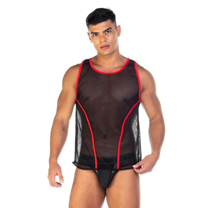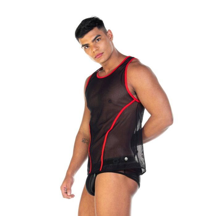 Maak de avond nóg heter en verras je partner met het dragen van de GIGO Fetish Tank Top - Rood. Deze tank top heeft een soepelvallend model en is gemaakt van hoge kwaliteit materialen waardoor de top heerlijk draagt. Ook is het materiaal super luchtig waardoor de tank top maximaal draagcomfort biedt en je al het comfort geeft waarnaar jij op zoek bent. Combineer de tank top eenvoudig met een leuke short of jockstrap voor een geweldige look.