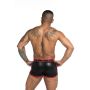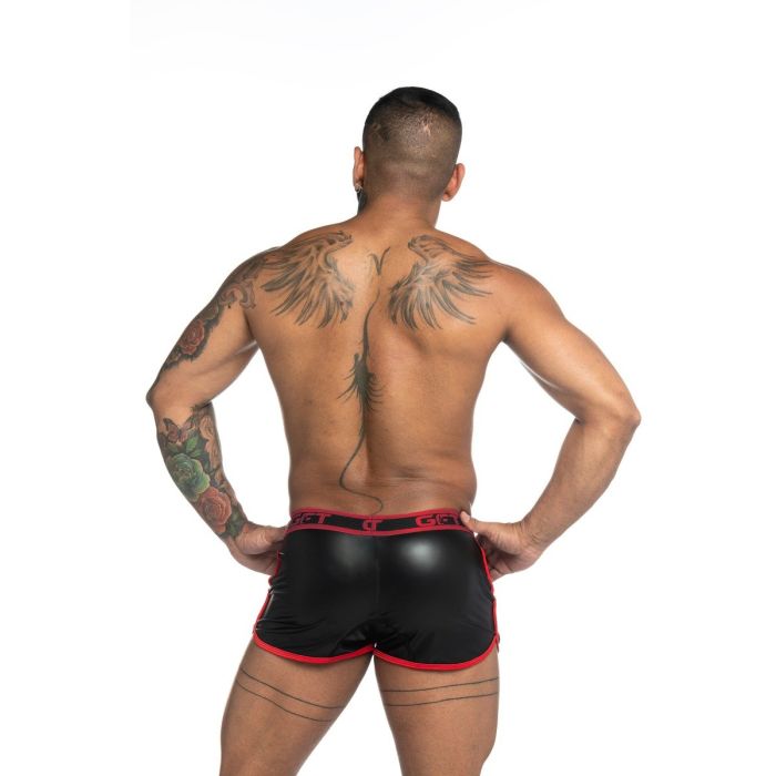 Deze short pants heeft een fetisj-stijl waardoor het dragen van deze short pants als zeer opwindend wordt ervaren. De pasvorm van de short is strak maar zeer comfortabel. De short pants heeft aan de voorzijde twee zakken en is afgewerkt met een rode bies aan de onderzijde. Daarnaast heeft de short pants contrasterende rode strepen voor een speels effect. Ook is de short pants gemaakt van licht glanzend materiaal waardoor het een luxe uitstraling heeft.