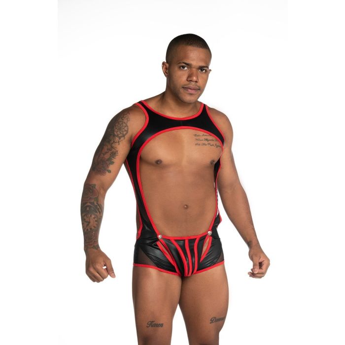 Voel je sexy en verleidelijk in de meest uitdagende (kinky) singlet. Deze singlet heeft alles wat je wenst voor een intieme nacht samen met je lover. De singlet is gemaakt van soepelvallend en licht glanzend materiaal waardoor het zeer comfortabel draagt. Ook heeft de singlet contrasterende rode strepen voor een speels en uitdagend effect. Combineer de singlet met de andere bijpassende kinky items en verleiden zal als nature gaan...