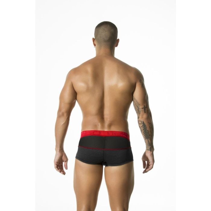 Vind jij het belangrijk dat je er ook goed uitziet wanneer je je kleding uit trekt? Dan is deze zwarte stoere mesh boxer van het merk GIGO echt iets voor jou! Deze boxershort heeft een brede rode tailleband waarop groot het GIGO logo te vinden is. De rode tailleband en biezen zijn mooi in contrast met de zwarte kleur van de boxer. Het materiaal en de voorgevormde pouch zorgen voor een zeer comfortabele pasvorm. Er lekker uitzien en je lekker voelen is nog nooit zo eenvoudig geweest! Deze stoere mesh boxershort van GIGO is in meerdere maten verkrijgbaar. Geniet van alle aandacht die je zult krijgen in deze zwart rode boxer met mooie afwerking.