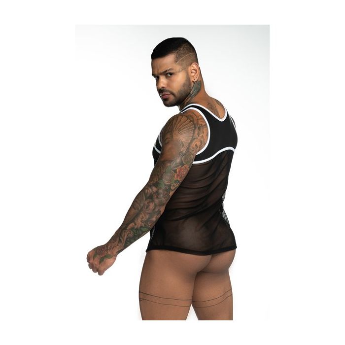 De GIGO Tank - Fetiche White komt uit de kinky fetish lijn van het merk GIGO. In het mouwloze model lijken jouw schouders heerlijk breed. De bovenkant van de tank is gemaakt van gladde stretch stof en de onderkant van sportief micro mesh. De stretch stof sluit goed aan om de schouders en de randen zijn afgewerkt met witte zomen.