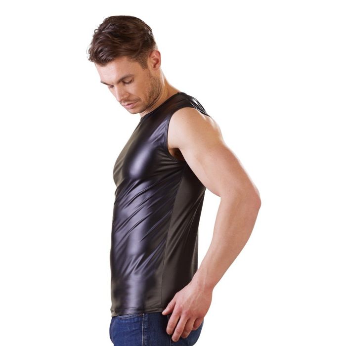 Het hemd is mouwloos waardoor je automatisch de nadruk legt op je sterke en stoere mannenarmen. Wie neem jij in je armen vanavond? Draag dit mat glanzende heren hemd tijdens een spannend avondje uit of gewoon thuis om je partner te verrassen. In beide gevallen zal dit kinky hemd goed aanslaan en je verwachtingen overtreffen.