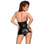 Voor een spannende bdsm look ga jij voor deze Glanzende Body met Riem. De body heeft een sexy look door de opening op de borsten en de zeer korte pijpjes. De body sluit achter in de nek en aan de voorkant is de body voorzien van een O-ring waaraan een riem met polsband kan worden bevestigd. Deze is meegeleverd zodat jij het optioneel kan gebruiken. Aan de binnenkant van de opening is de body voorzien van een kantje voor een romantische look. De body heeft een rits over het kruis heen lopen die open en dicht kan voor makkelijke toegang.