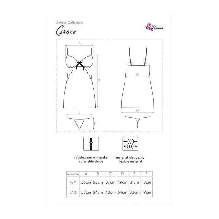 Het Grace Nachtjurkje met String uit de Amber collectie van het merk Livco Corsetti maakt zeker haar naam waar, want elegant is dit jurkje zeker! Deze little black dress voor in de slaapkamer is gemaakt van heerlijk gladde zacht aanvoelende stof en heeft ongevoerde beugelvrije cups voor een natuurlijke look. Het decolleté is afgewerkt met een geschulpt randje en strikje en de smalle schouderbandjes zijn verstelbaar.