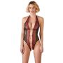 Met deze spannende body verhoog jij binnen no time de temperatuur in de slaapkamer. De body is gemaakt van schitterend materiaal met een combinatie van romantisch rood kant en transparant mes materiaal. De voorkant is geheel open en wordt bij elkaar gehouden door middel van een sluiting met strass steentjes. Het open kruis zorgt ervoor dat jij direct toegankelijk bent voor je lover en zo deze spannende body gewoon aan kan houden. De body sluit achter in de nek en is dus open op de rug.