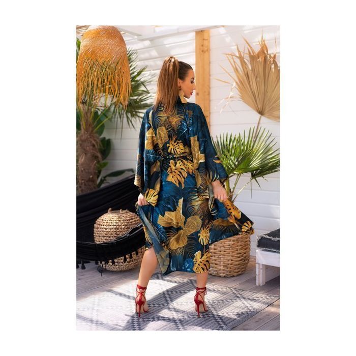 Ga voor een stijlvolle beach look met de Handis Kaftan uit de Aquareel Collection van Livco Corsetti! Dit prachtige gewaad is gemaakt van gladde, satijn geweven stof dat sierlijk om jouw lichaam wappert. De stof heeft een tropische print van blauwe en gele bladeren voor een bijzonder mooie en opvallende zomer look.