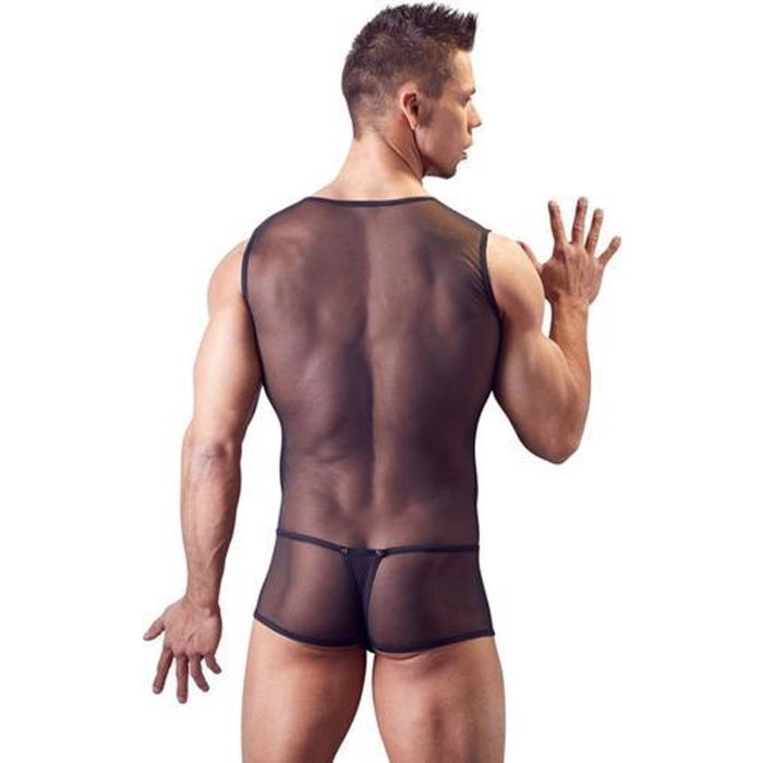 Deze schitterende voorgevormde body is perfect voor de man die zichzelf graag laat zien in zijn volle glorie maar die toch een beetje gekleed wil zijn. De body is van transparant powernet materiaal gemaakt, en is licht doorschijnend zodat je mooie spieren goed zullen uitkomen wanneer jij de body aan hebt. De body heeft brede schouders en een kort broekje die net de bovenbeen en heupen bedekt. De ingenaaide string heeft een unieke zwel functie die jouw penis nog meer volume zal geven dan dat ie al heeft.... Draag deze body naar een spannend feestje onder je kleding en verras iedereen wanneer je kleding uitgaat of verras je partner in de slaapkamer met deze sexy body aan.