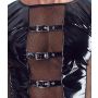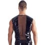 Dit elastisch Heren Lak Shirt met Riempjes is een ware eye catcher en zal het perfect doen op elk feestje. De voorkant, achterkant en zijkanten zijn voorzien van netstof en is dus doorzichtig. Aan de voorkant over het netstof heen zitten 5 riempjes voor een extra sexy look. Wanneer jij dit shirt aan hebt zal jij optisch bredere schouders hebben doordat hij breed over de schouderpartij heen loopt. Het glanzende materiaal zorgt voor een kinky uitstraling. Combineer dit shirt op een stoere jeans of op een lakbroek en maak je outfit compleet voor elk feestje wat komen gaat.