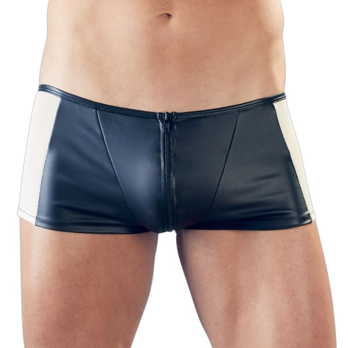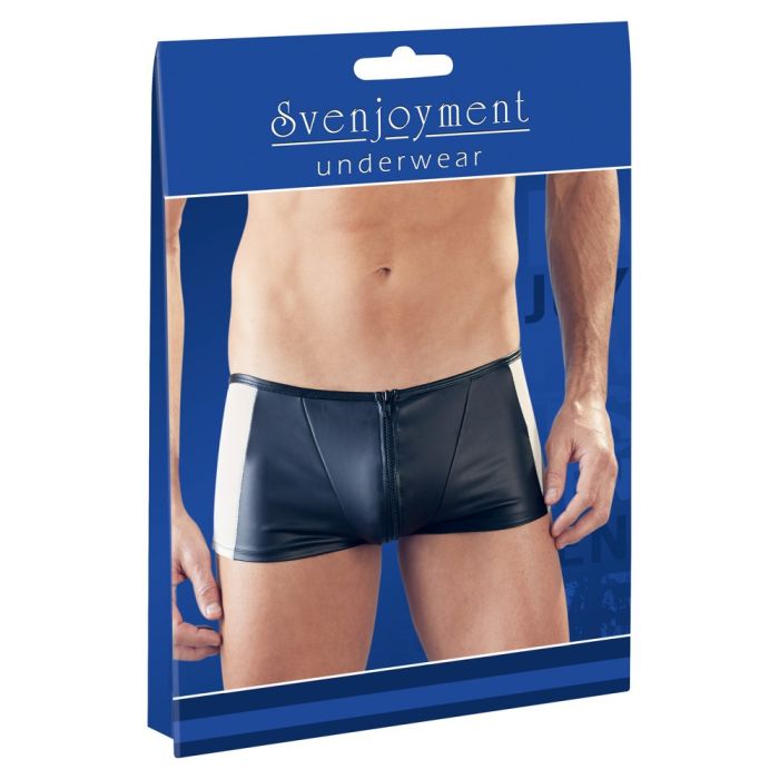 Op zoek naar een spannende heren short die je niet helemaal uit hoeft te trekken voordat jouw belangrijkste onderdeel tevoorschijn komt? Deze zwarte heren short met rits van Svenjoyment Underwear biedt ‘easy access’ voor iedereen van wie jij het toelaat. De boxer heeft een kinky uitstraling en bevat transparant mesh aan de zijkant om je ondeugende look compleet te maken. Het materiaal van deze boxer is zeer rekbaar en elastisch waardoor hij een mooie aansluitende pasvorm heeft. Draag deze heren boxer met rits tijdens een spannend avondje uit of gewoon onder je dagelijkse kleding en voel je zelfverzekerder dan ooit. Wie mag jouw rits openen vanavond?