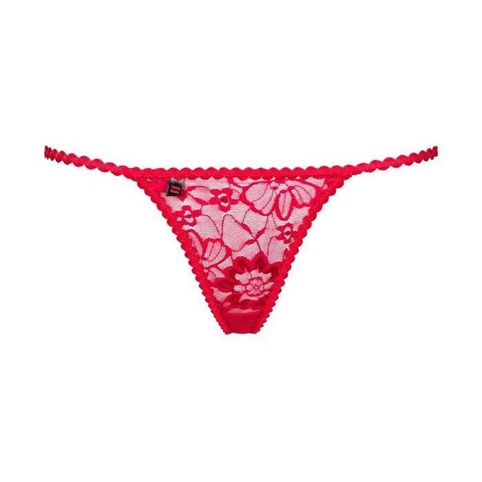In de Hetea String - Rood van Obsessive ben jij heter dan heet! Deze sexy string is gemaakt van zachte materialen met stretch kwaliteit voor een aangename pasvorm. De string zit lekker laag om de heupen. Het voorpand is gemaakt van doorzichtig bloemen kant. De achterkant is geborduurd en voorzien van een luxe sieraad.