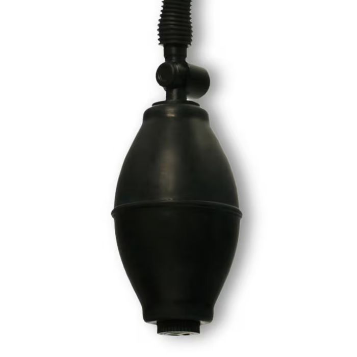 - Knijpbal: Je knijpt een bal om de lucht uit de cilinder te pompen.