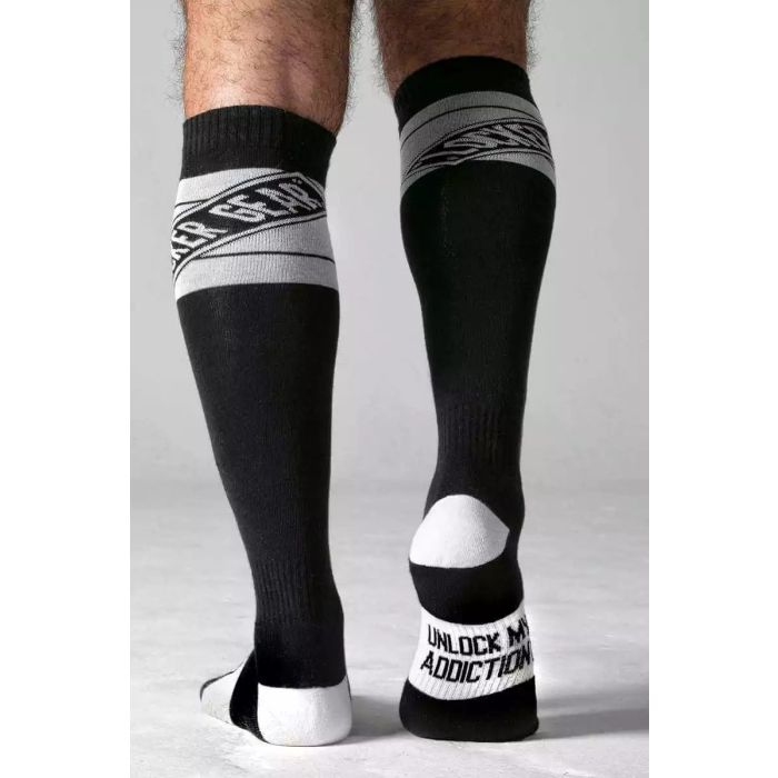 Deze geweldige heren sokken zijn de perfecte accessoire om je outfit stijvol af te maken. Je kunt deze sokken dragen bij je favoriete Locker Gear jockstrap, singlet, slip of andere uitrusting. De sokken zijn voorzien van strepen, gekleurde patches en Locker Gear-branding. Doordat de sokken op kniehoogte zijn creëer je een sexy uitstraling. Daarnaast zijn de sokken gemaakt van een mix van katoen en nylon. Hierdoor zijn de sokken dik en super comfortabel. Verder zijn de hiel en teen gedempt en hebben ze voetboogondersteuning waardoor de sokken slijtvast zijn en heerlijk zitten!