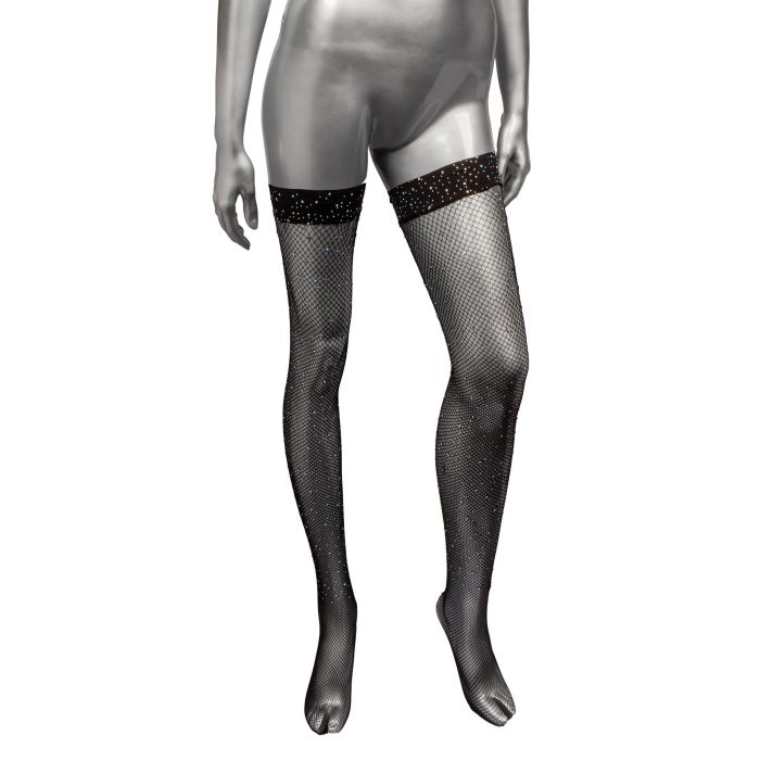 - Materiaal:92% Nylon, 8% Spandex (fabric) 92% Nylon, 8% Rubber (elastic) Silicone (clear stay-up support) 100% Glass (rhinestones)