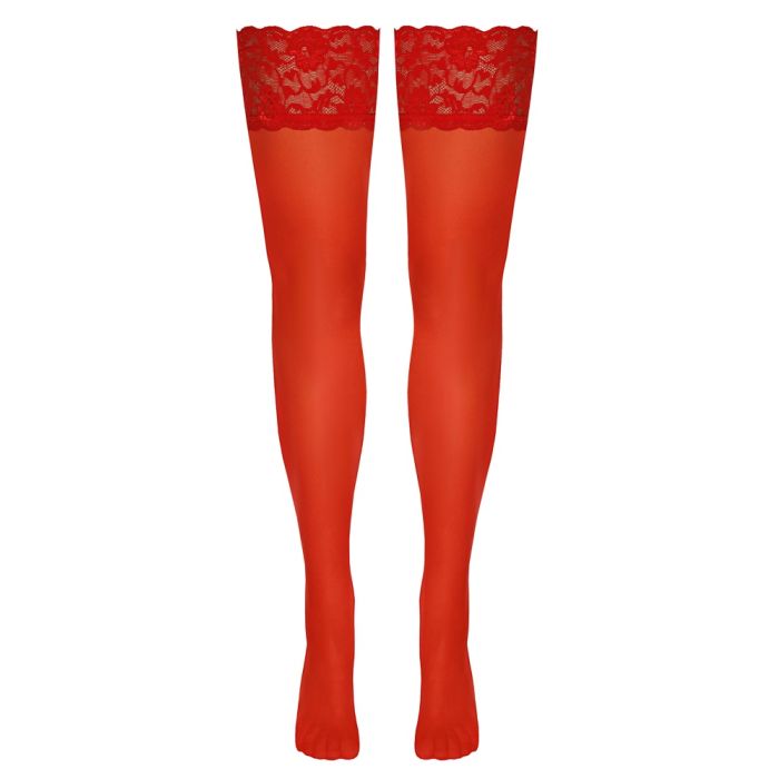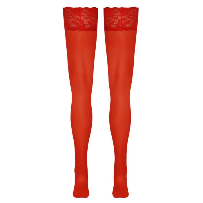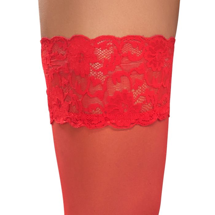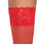 Deze Hold-up rode kousen van Cottelli LEGWARE zijn perfect voor een verleidelijke look! De kousen hebben een prachtige 9 cm brede kanten top, waardoor ze er elegant en sexy uitzien. De binnenkant van de kousen is voorzien van siliconen versteviging, waardoor ze niet afzakken en een optimale hold bieden. Met een draadmaat van 20 den zijn deze kousen zowel stevig als comfortabel om te dragen. Bovendien zijn ze Oeko-Tex gecertificeerd, wat betekent dat ze voldoen aan strenge milieunormen. Gemaakt van 80% polyamide en 20% elastaan, bieden deze kousen een perfecte pasvorm en een luxueuze uitstraling.