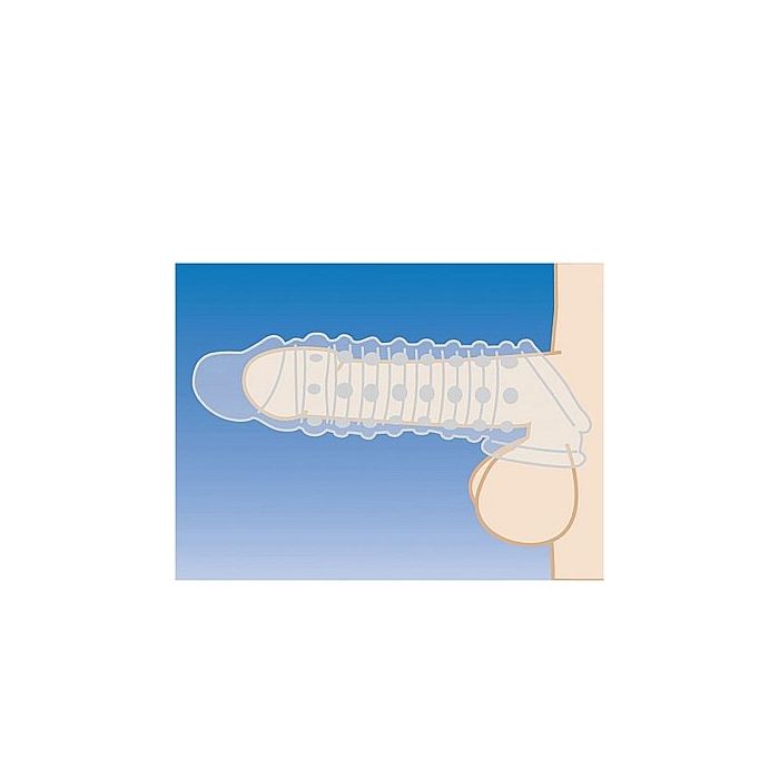 Voeg lengte en omtrek toe aan je mannelijke trots met deze superzachte penissleeve! Deze hobbelige sleeve is zacht en flexibel voor een knusse maar comfortabele omhelzing op je mannelijke trots. De sleeve is extern getextureerd met hobbels en ribbels om de binnenkant van je lover te prikkelen. Daarnaast heeft de sleeve ook interne textuur voor je eigen plezier wanneer je de sleeve draagt. Deze penis sleeve is perfect voor koppels die willen experimenteren met een grotere schacht zonder ongemak en zodra de stemming toeslaat! Je kunt het beste veel glijmiddel op waterbasis aanbrengen wanneer je gaat spelen voor een aangenaam gevoel.