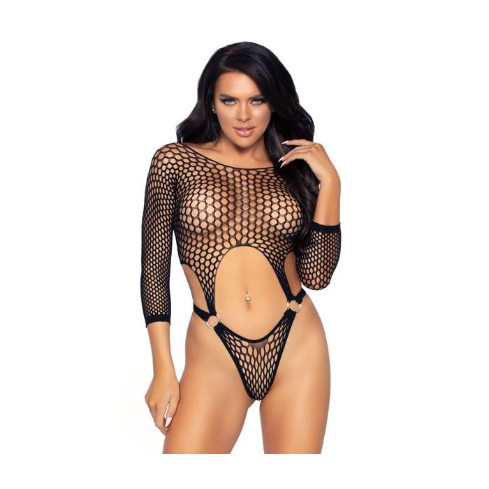 De Industrial Bodysuit - Zwart van Leg Avenue is een stoere string body. Deze sexy body heeft een hoge kwaliteit! De bodysuit heeft een industrial look door het grove netstof en de metalen ringen. De bodysuit bestaat uit een crop top met lange mouwen en een string die door de metalen ringen met elkaar zijn verbonden. Het fijne netstof heeft een hoge rekbaarheid voor een geweldige aansluitende pasvorm.