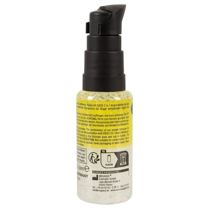 De Intieme Gel 2in1 care & delay van het merk Eros is speciaal voor langer seksueel genot en verzorging tegelijk. Bevat hydraterende panthenol, verfrissende pepermuntextracten en laureth-9. Geur- en smaakloos.