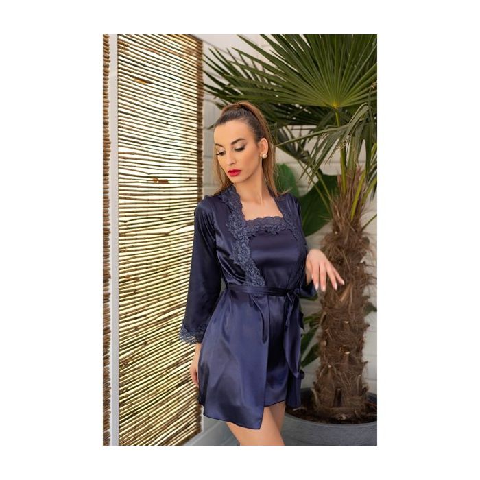 Deze driedelig set in een prachtig blauwe kleur zal verleiden extra leuk maken. De Jacqueline Nightwear Set - Blauw bestaat uit een kimono, een chemise en een string gemaakt van gladde, glanzende stof. De glanzende stof glijd gracieus over jouw prachtig ronde vormen en voelt heerlijk aan. De chemise is door de verstelbare schouderbandjes gemakkelijk aan te passen aan jouw lichaam. De kimono heeft lange mouwen en een strik ceintuur.