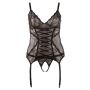In dit setje van Cottelli Collection zul jij je super vrouwelijk en verleidelijk voelen en je partner zal dit zeker beamen. De set bestaat uit een nauwsluitende korset top met jarretelbandjes en een kruisloze string. De set is geheel gemaakt van doorschijnend tule en is luxe afgewerkt met kant. Het kant, het rijglint aan de voorzijde en de zomen vormen een prachtig lijnen spel over het voorpand van de korset top en slankt optisch af. In dit jarretel setje voel je je op en top vrouw en ga je een hete avond met je partner tegemoet!