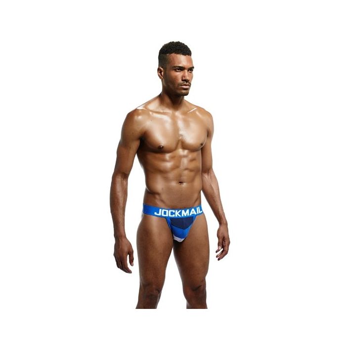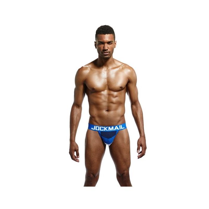 Ben jij op zoek naar een stijlvolle jockstrap? Ga dan voor de JM211 Color Block Jockstrap - Blauw van het merk Jockmail. Deze jockstrap heeft een laag model en een open achterkant met liftende banden, zodat jouw sexy kontje er nog beter uit zal zien! De buidel is gemaakt van heerlijk zacht, ademend katoen van hoge kwaliteit en is bovendien zweet resistent. De kleurvlakken in het Blauw, Donkerblauw en Wit geven de jockstrap een stijlvolle look.